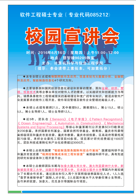 u 本专业硕士点现有物联网软件及应用、信息系统与大数据分析、金融软件及应用、智能制造信息化4个研究方向。