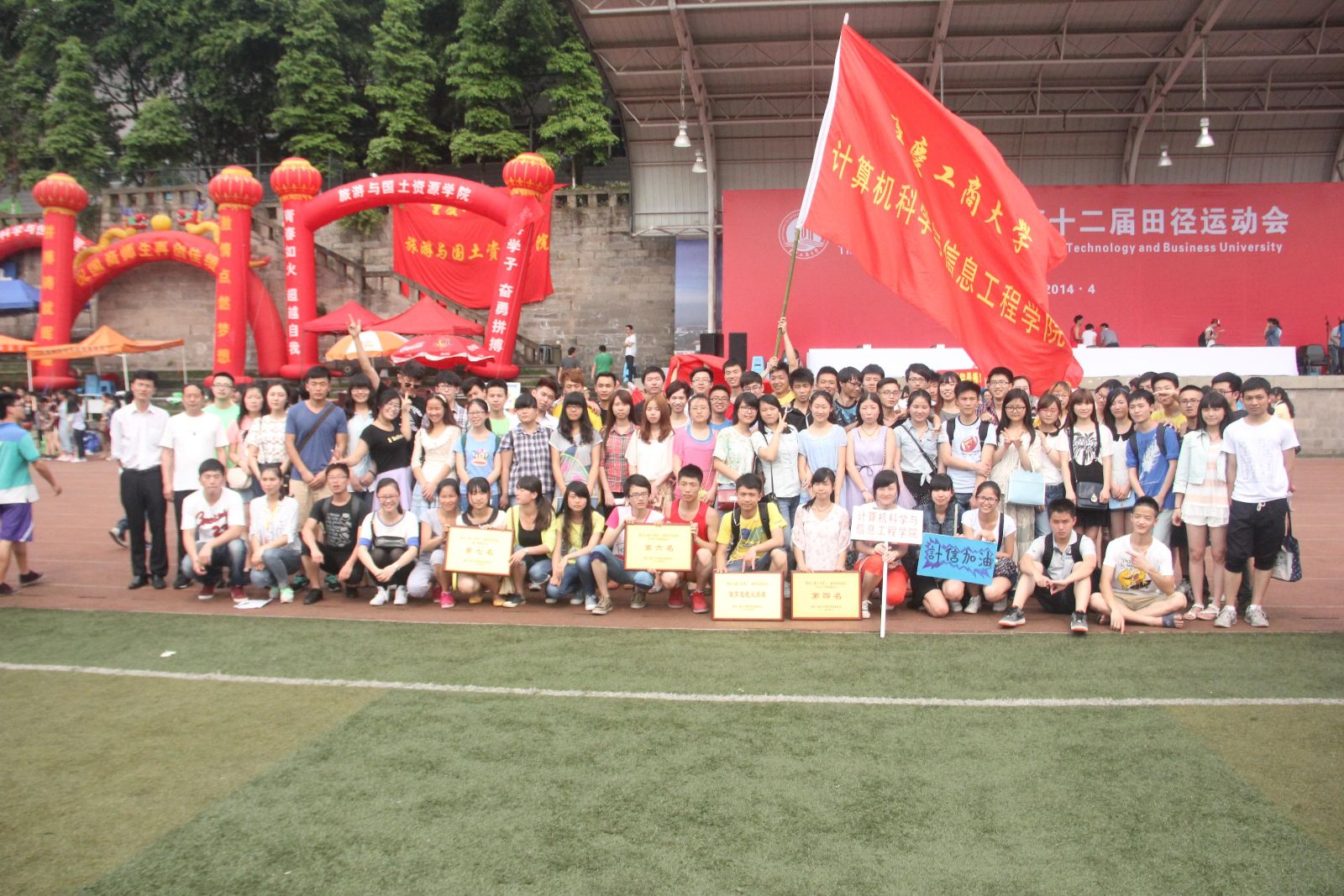 还记得18日那一个个挑战地心引力的运动员吗?凝神屏息,你全神贯注,直视前方;厚积薄发,你猛然跃起,暴发力量。如猎豹般的冲刺,如羚羊般的跳跃,你是如此的耀眼瞩目。振奋人心的4*400米和20*60米决赛在下午如火如荼的展开了,一只接力棒,在你手中接过,一份坚持的力量,在你我手间传递,直视前方,你乘风而跑,因为你明白荣誉的桂冠就在前方。计信公司的老师们努力奔跑着,毫不逊色于同学们,他们没有了讲台上的严肃,更添了一丝亲切和活泼,同学们为他们加油,为他们卖力嘶吼,老师们也是没有辜负同学们的加油声,获得了优异的成绩。