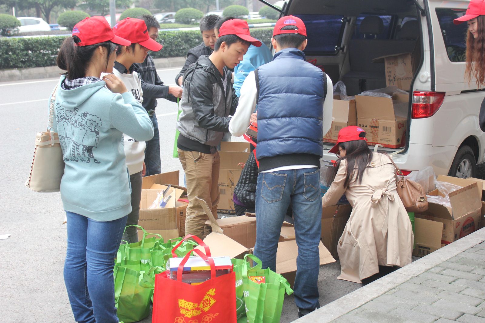 营销梦之队队员们对南孚系列产品进行分类整理及分发