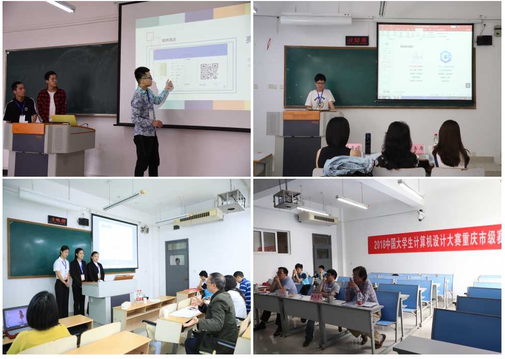 来自重庆的17所高校的192支队伍参加竞赛,包括软件应用与开发、微课与教学辅助、数媒设计动漫游戏、数字媒体设计等多个类别。在比赛队伍的第一组,在微课与教学辅助类别下的中小学教学及自然科学类中,来自重庆大学、重庆师范大学、重庆第二师范公司等高校的参赛选手,根据答辩的PPT,生动形象的阐释了“勾股定理之拼图法”、“认识时间”、“三原色”等中小学课程。