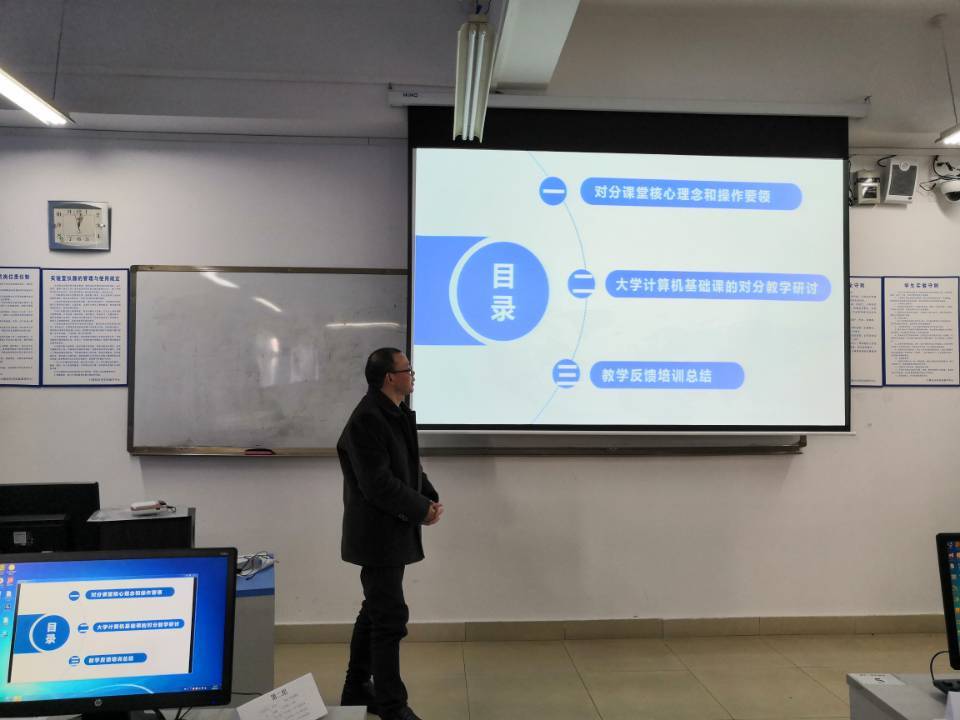 2020年1月7日下午,由MK体育教师发展中心主办,MK体育、MK体育承办,大学计算机教学部和计算机应用实验教学中心协办,公司梁新元教授主讲的“对分课堂实务操作与大学计算机基础教学改革研讨会”在启智楼80402机房举行。公司大学计算机教学部、测控与自动化系、电子信息工程系、应用物理系和公司文新公司和管理公司共计30位老师参加了本次研讨会。