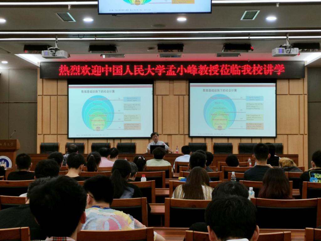 孟教授向与会师生报告了社会计算的概念、内涵与外延以及国外研究现状与未来发展趋势,介绍了我国在该领域的研究目标和总体思路,指出了社会计算研究过程中遇到的问题并提出了有针对性的建议。