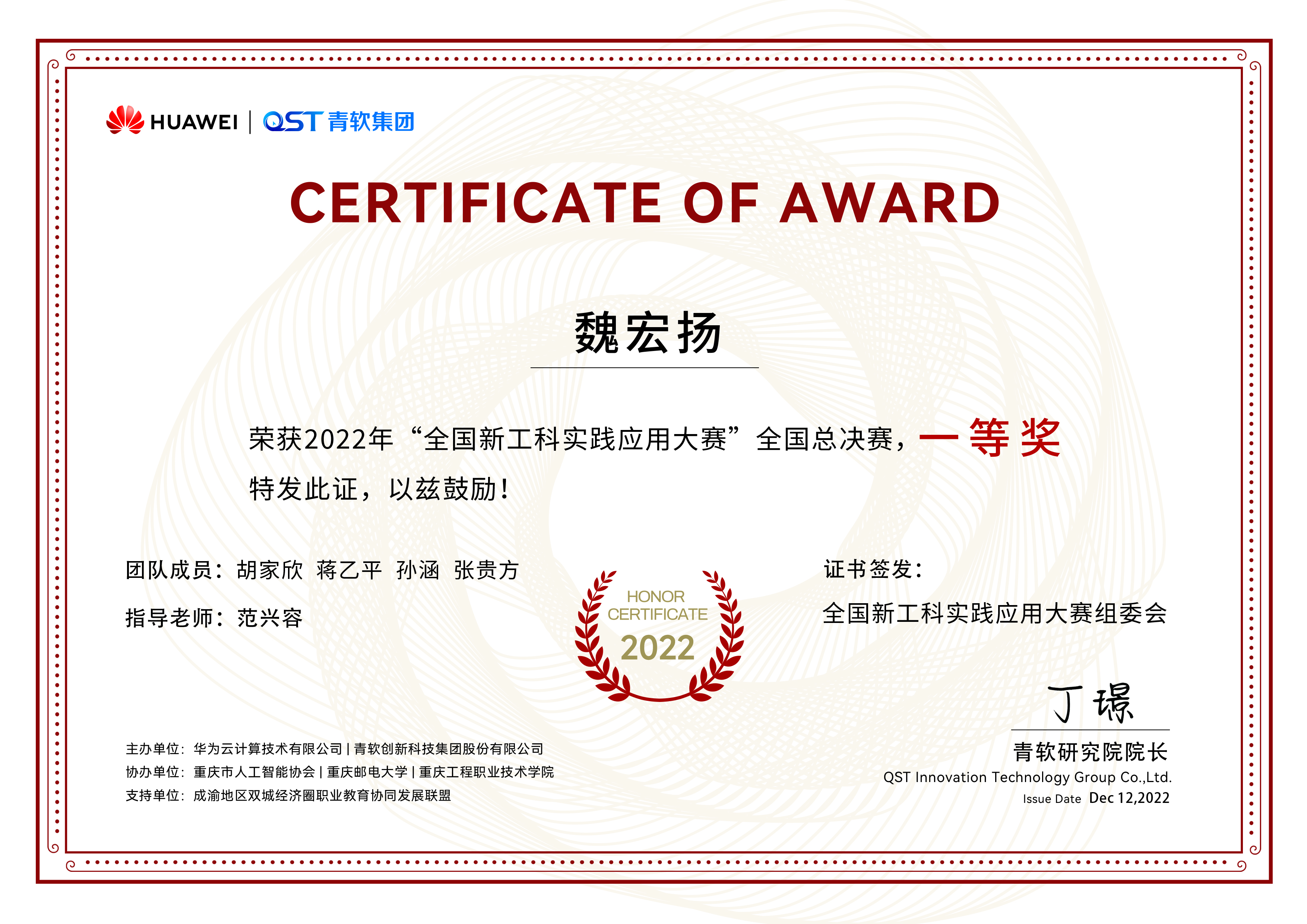 2022年11月21-30日,华为云2022年全国新工科实践应用大赛全国总决赛在云端如期举行。 数百支来自全国各大高校的参赛队伍在线上展开⻆逐,经过激烈的切磋比拼与专家评审,公司 MK体育学子在AR科创团队指导教师范兴容博士指导下获得全国一等奖2项的好成绩。