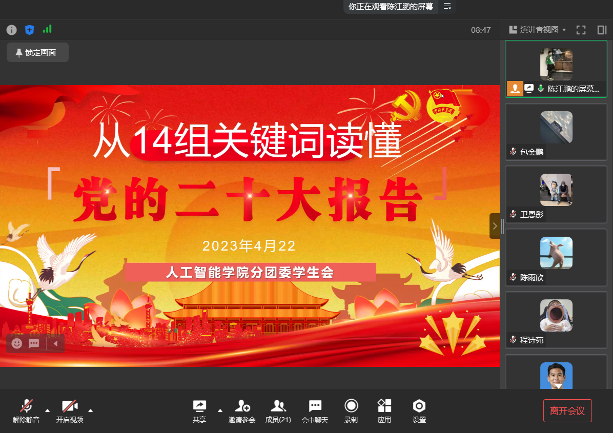 为深入学习宣传贯彻党的二十大精神,号召新时代青年紧跟党的步伐,深入贯彻落实习近平总书记关于青年工作的重要思想,进一步深化新时代高校员工会改革和建设,不断提升员工满意度、大局贡献度和社会认可度,4月22日中午1点,MK体育分团委员工会以线上会议的形式举行了党的二十大精神学习分享会。院员工会主席团和部长团全体成员参与了本次会议,会议由主席团成员陈江鹏主持。