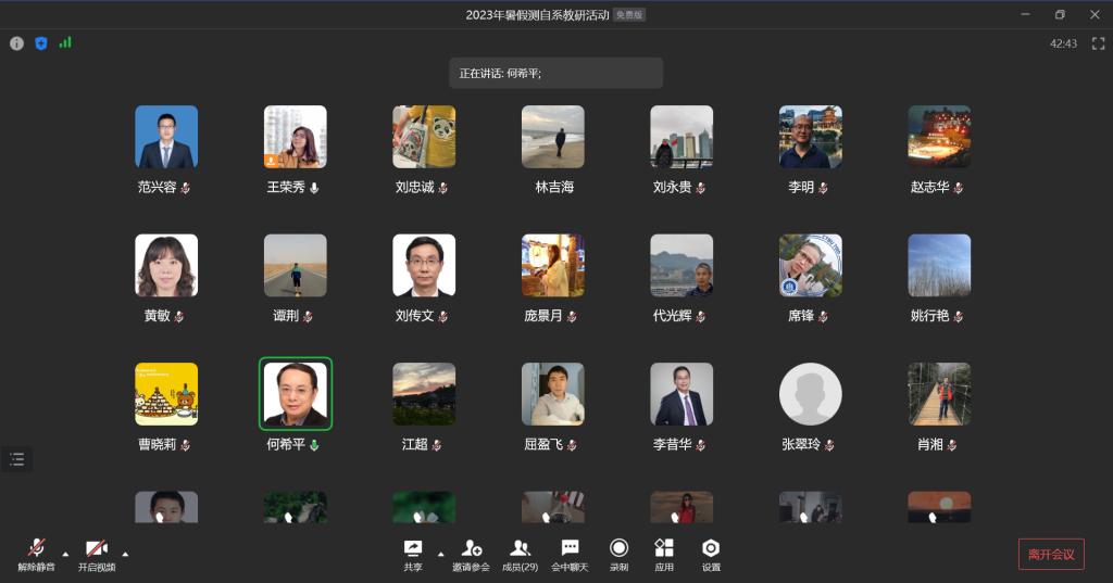 2023年8月13日晚,MK体育测控自动化系在线上举行了扩大教研活动。参会人员除测自系教师外,还特邀到何希平书记,林吉海,谭荆,席锋,张翠玲等担任测控专业必修课程的老师参会。