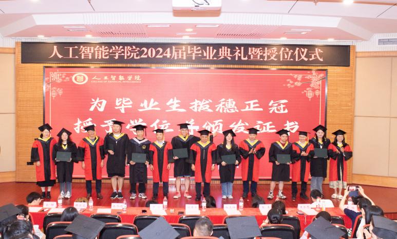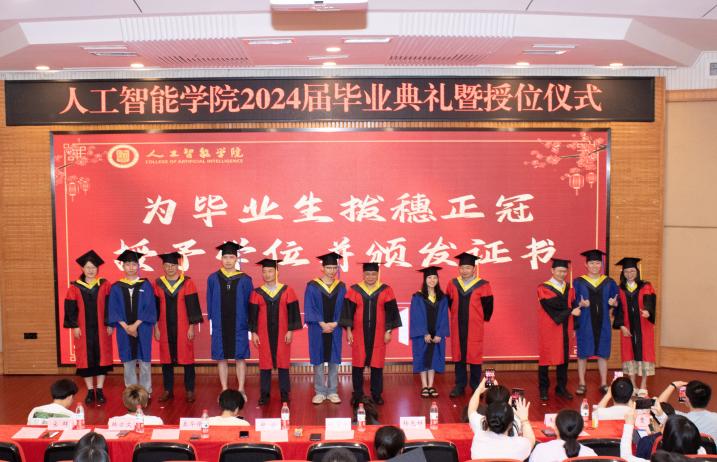 6月18日下午,2024届毕业典礼暨授位仪式在7200学术厅隆重举行。公司党委书记何希平、经理申渝、副书记张未、副经理杨光祥、秦华锋,学位委员会委员、教师代表、家长代表、全体辅导员及2024届本硕毕业生参加仪式。仪式由辅导员向娇娇、23电子一班李佳漪主持。