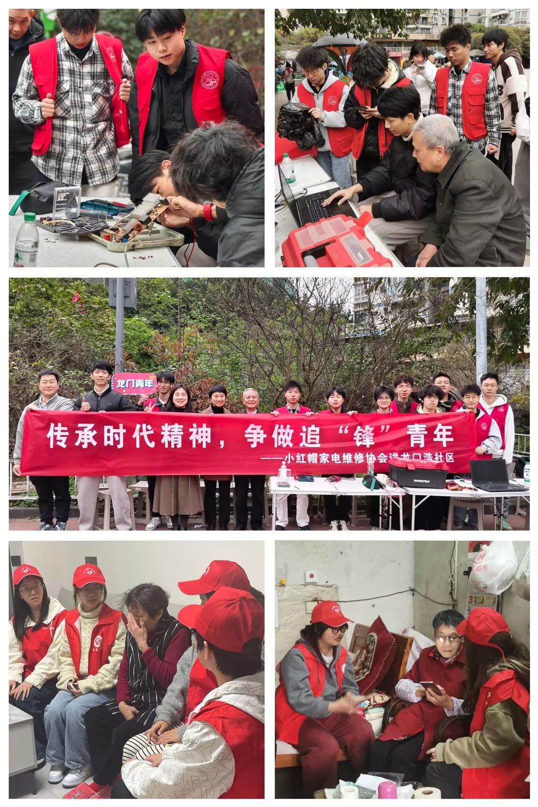在聆听完“五老”榜样教育后,员工志愿者们分组开展精准化、特色化志愿服务。一是开展“银龄关怀”上门行动。青年志愿者服务队深入独居老人家庭,提供清洁卫生、代购物资、智能手机教学“一对一”服务,累计帮助10余户老人解决生活难题。二是开设“小红帽”便民服务岗。公司“小红帽”家电维修协会在皓月广场开展家电维修惠民服务,普及家电保养维修知识,演示简单故障处理方法,惠及群众100余人次,修复吹风机、电风扇、电热水壶等小家电30余件,切实解决“家门口”的生活需求。