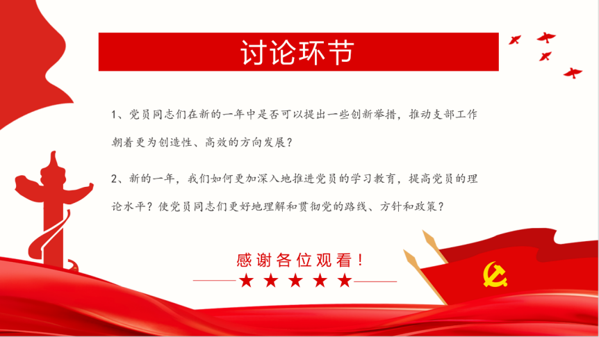 支部组织活动最后,与会党员针对“新的一年,我们如何更加深入地推进党员的学习教育,提高党员的理论水平?推进支部往更好的方向发展?”展开了热烈的讨论。支部党员提出建立更多的学习交流平台,开展党小组组内评比,营造良性互学向上氛围,以便更好地学习党的理论知识和政策。此外,有同志提出通过开展志愿活动、社会实践等方式,让党员更好地理解和贯彻党的路线、方针和政策,将学习到的知识运用到实际中去,增强社会责任感。