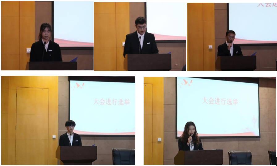 随着庄严的国歌响起,大会正式开幕。校团委员工会主席团成员黄子洁宣读校团委《关于公司第四次员工大会》批复。陈江鹏代表上一届员工会作工作报告。报告全面回顾了过去一年员工会以加强政治引领为根本任务,以全心全意为全体同学服务为宗旨,扎实开展思想政治教育工作;积极打造品牌活动,不断扩大公司影响力;响应号召,积极投身社会,深化青年志愿者行动和社会实践活动;注重宣传,规范宣传阵地管理等方面的具体工作,并对接下来的工作内容和方向进行了展望。接下来,大会宣读《公司第四次员工代表大会主席团选举办法》,审议通过总监票人、监票人、总计票人、计票人名单以及公司新一届员工会主席团候选人名单。候选人卫恩彤、邵俊力、佘荏臻、刘书宏、陈雨欣分别作竞职演讲,全体员工代表以无记名方式进行投票。根据投票结果,陈雨欣、卫恩彤、邵俊力当选为新一届员工会主席团成员。