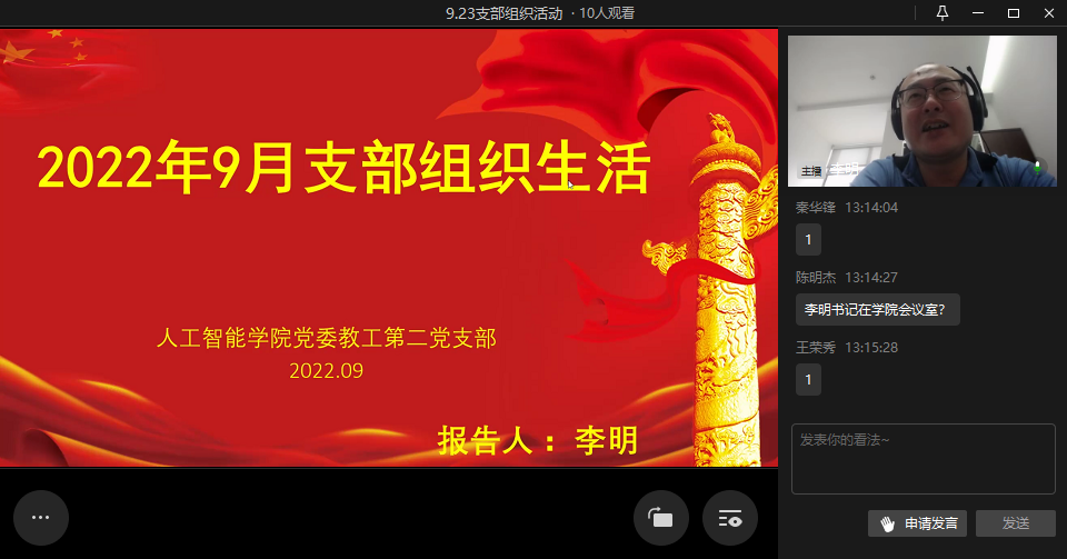 2022年9月23日MK体育教工二支部在企业微信以线上会议的方式开展九月份支部组织生活,活动由支部书记李明同志主持。