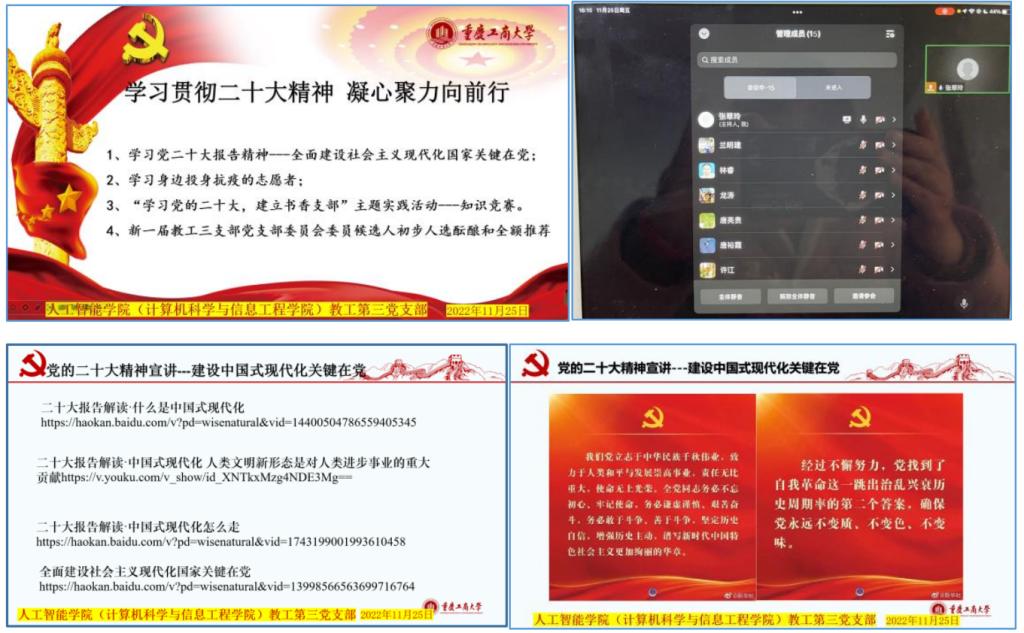 为深入学习贯彻党的二十大精神,把支部党员的思想统一到党的二十大精神上来,把力量凝聚到党的二十大确定的各项任务上来,11月23日下午4:00,MK体育教工第三党支部召开党员大会,通过企业微信组织全体党员开展了“党的二十大精神---全面建设社会主义国家关键在党”的专题学习,会议由支部书记张翠玲同志主持。