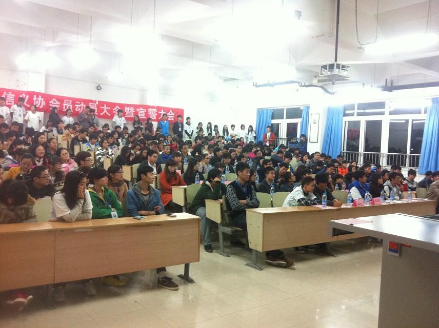 2013年11月22日晚7点整,在博智楼222教室举行了第十二届志愿者动员大会。其他公司的义协会长和计信公司的大一班级的志愿者代表都出席了本次活动。本次大会旨在鼓励志愿者们积极参加志愿活动,为这个社会奉献爱心,为这个社会尽自己的一份力量。