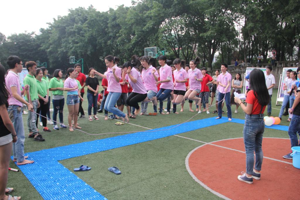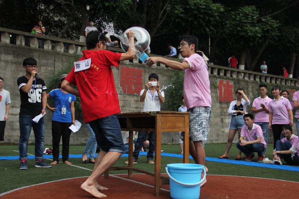 活动分为“接力赛”、“眼疾手快”、“撕名牌”三个环节。员工会成员共分成三组,分为A、B、C小组,每组15人。每个环节将有12人参加比赛。首先进行“接力赛”的计时游戏。此环节分为“醉汉投球”、“士兵突击”、“我是跳跳龙”、“带我飞”,共四个小板块。游戏最刺激的莫过于全程都在指压板上完成,比赛现场惨叫连连,但他们痛并快乐着,始终带着笑容完成比赛。最终A组获得此环节第一。接下来进行的“眼疾手快”,则需要同学手快,眼快,并且还要准。选手通过猜拳,赢者,用水杯泼水,败者,用锅盖挡水。任何一方有失误,则失败。几轮比赛下来,不少同学的头发和衣服上已沾满了水,一次次的泼,一次次的挡,最终仍是力量强大,实力雄厚的A组获得此环节的胜利。最后一局,最最令人激动的环节“撕名牌”精彩上演。各组经过深思熟虑,最终确定十名队员,依次编号1-10号上场撕名牌。各组队员都使出浑身解数,各出奇招,力争撕掉对手名牌。经过几番激烈的厮杀,B组获得胜利。最后,主持人统计并宣布比赛结果,最终实力强大的A组获得第一,C、B两组分获二、三名。