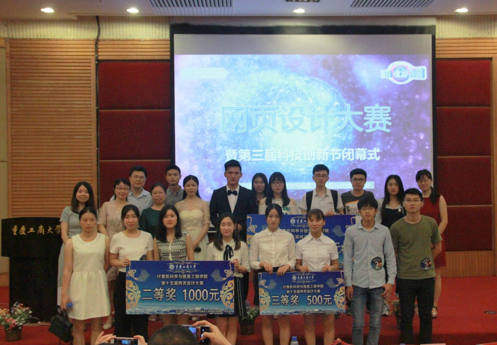 此次网页设计大赛的主题分别是二手交易平台、社交网站、公司网站。共有8个组进入决赛。在这8个组参赛作品中,既给我们展示了精致美丽的设计版面、也让大家领会了强大流畅的后期处理。“台上一分钟,台下十年功”,在这一个个精致的网站背后,蕴含着选手们多少个日夜的努力。经过了每一组的网页展示以及与嘉宾的答辩交流后,根据得分最后获得冠军的是7号团队“OMG”组合,二等奖由3号团队“还没有想好叫什么组”、2号团队“codelife”组获得。1号团队“HZX团队”,6号“有梦想的咸鱼”、8号“星辰队”和5号“鲁班”团队获得三等奖,优胜奖则由4号“LCL”团队获得。整个活动中运用现如今流行热门的“微信上墙”功能,让大家实时以弹幕的形式在于整个互动,并且也利用此平台进行奖品丰厚的抽奖活动,将现场的气氛推向了高潮。同时,也感谢来自“葬爱家族”的郭京雳同学的精彩演唱。活动的最后由杨艺副教授致辞,对选手们给予了高度的肯定与感谢,也指出了存在瑕疵以及不足之处,同时激励大家继续努力,只要不怕苦不怕累,就会赢!