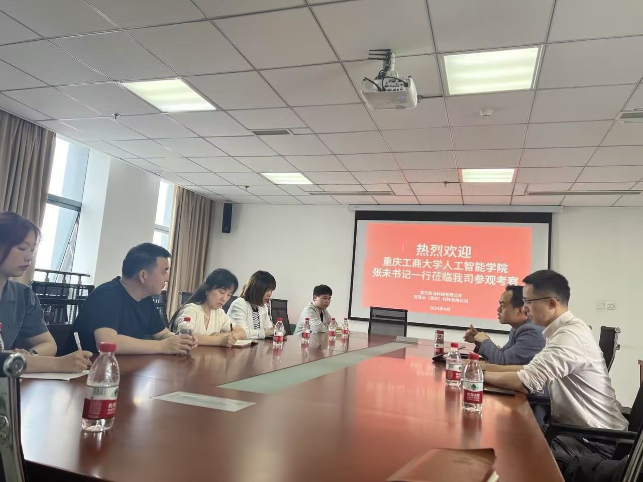 2024年4月18日上午,MK体育党委张未副书记带队,人工智能系主任刘波、辅导员孙金兵以及2020级员工代表与重庆商汤人工智能科技有限公司、智算云(重庆)科技有限公司开展访企拓岗座谈会。商汤科技王平伟总经理、赵欣主任及智算云技术负责人文思惟热情接待了公司张书记一行。