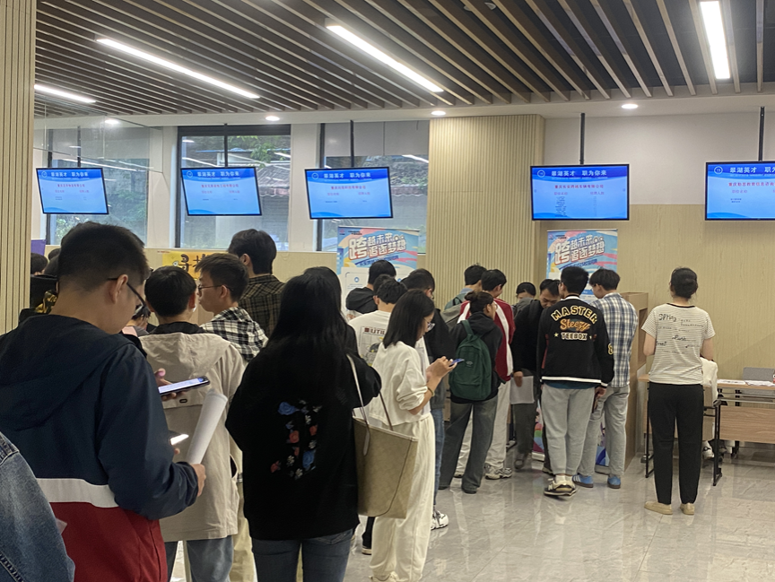 2024年10月25日,在员工事务中心一楼招聘大厅成功举办了“翠湖英才,职为你来”公司举办的秋季校园招聘月系列专场招聘活动。参会单位27家,职位106个,招聘人数2052个,涉及院校内各类专业。诚迈科技、重庆理工职业公司、云领智数等企业纷纷前来参展,企业在各自展位详细展示了公司的薪资待遇及岗位需求。众多同学被吸引而来,积极参与其中。各大企业招聘代表与员工互动热烈,参加招聘会的员工纷纷在自己意愿企业的展位前排起长队面试,与企业代表进行面对面的深入交流,以了解更多关于职业发展的信息和机会。