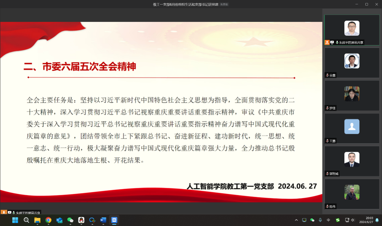 2024年6月27日MK体育党委教工第一党支部在企业微信平台上开展6月份支部组织活动,活动由支部书记朱超平主持。本次组织生活的内容包括6个部分,即: