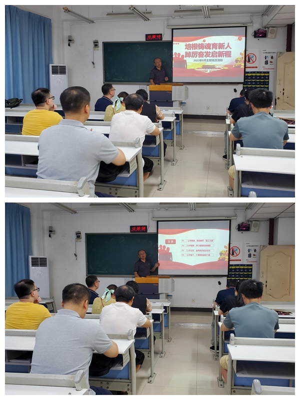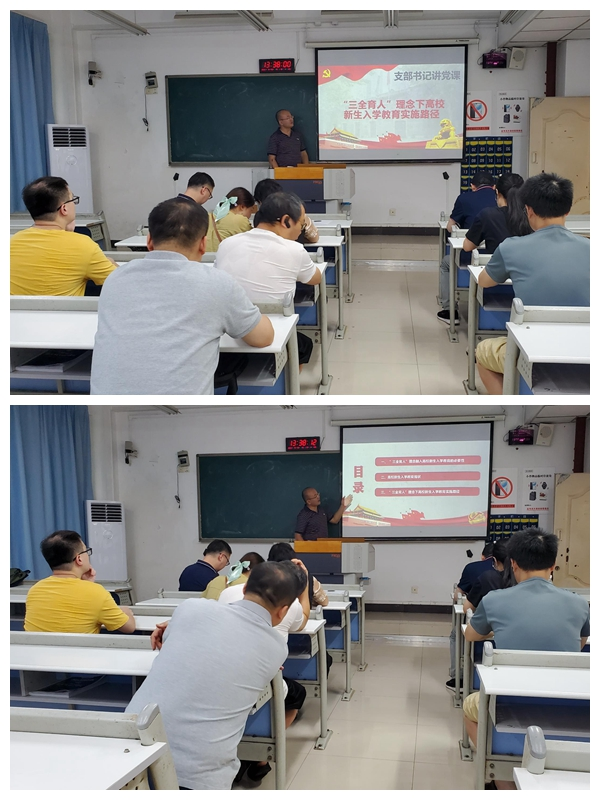 在主题党日活动之后,教工二支部进行了“支部书记讲党课”活动。支部书记李明同志结合刚刚结束的新生入学教育活动,以“三全育人理念下高校新生入学教育实施路径”为题为支部党员讲党课。李明从“三全育人”理念融入高校新生入学教育的必要性,高校新生入学教育现状,以及“三全育人”理念下高校新生入学教育实施路径三个方面进行了深入了讲解。李明最后指出,新生入学教育是构建现代化教育体系的重要基础,是开展老员工思想政治教育的重要环节;必须坚持“三全育人”理念,丰富教育内容和形式,使新生入学教育工作真正成为高校后续一切教育工作的基石。